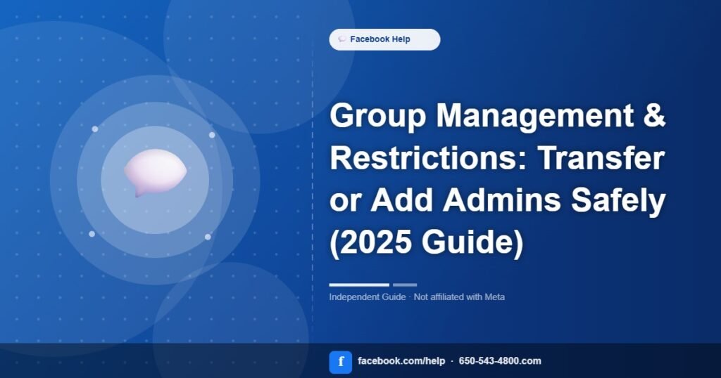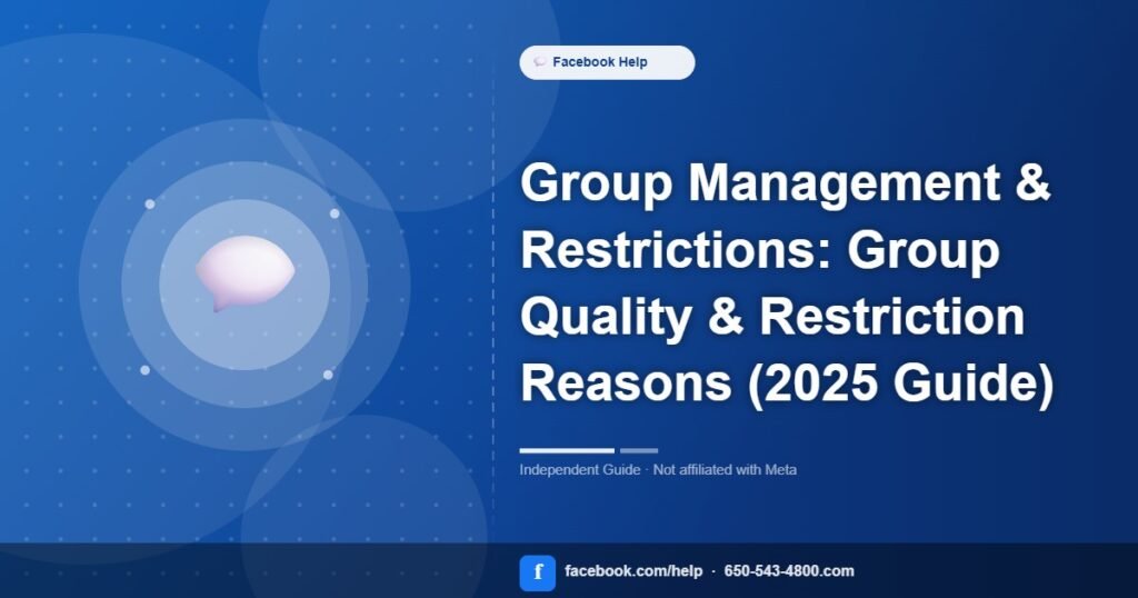 Step‑by‑step fixes for group quality & restriction reasons under Group Management & Restrictions. Unofficial guide—no phone support; use in‑app Help & Support and Support Inbox.